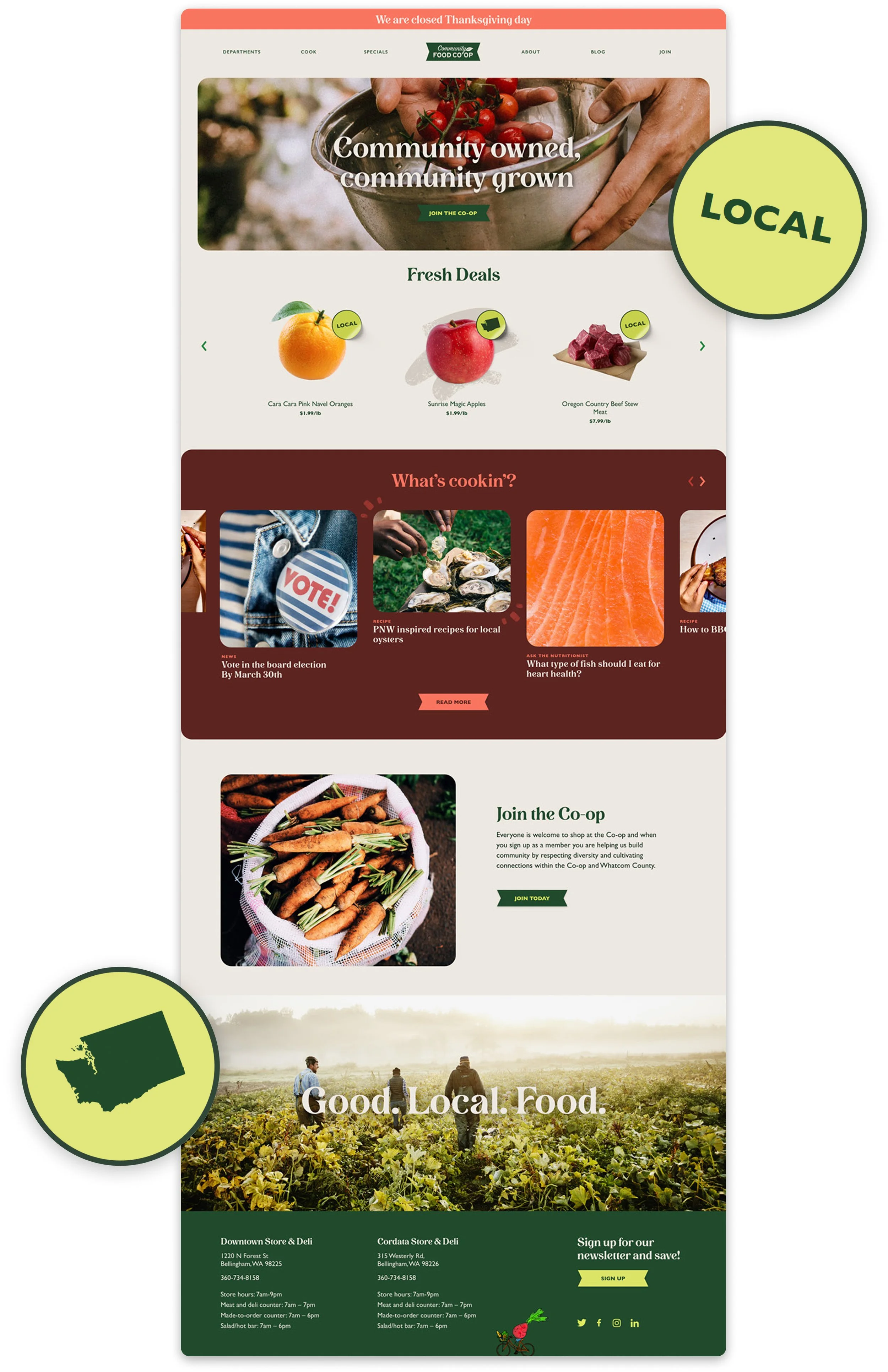 A small food co-op in Bellingham Washington wanted to refresh their brand and update their online presence. The team I worked on developed a whole new look and feel for the co-op that built on their heritage and looked toward the future.